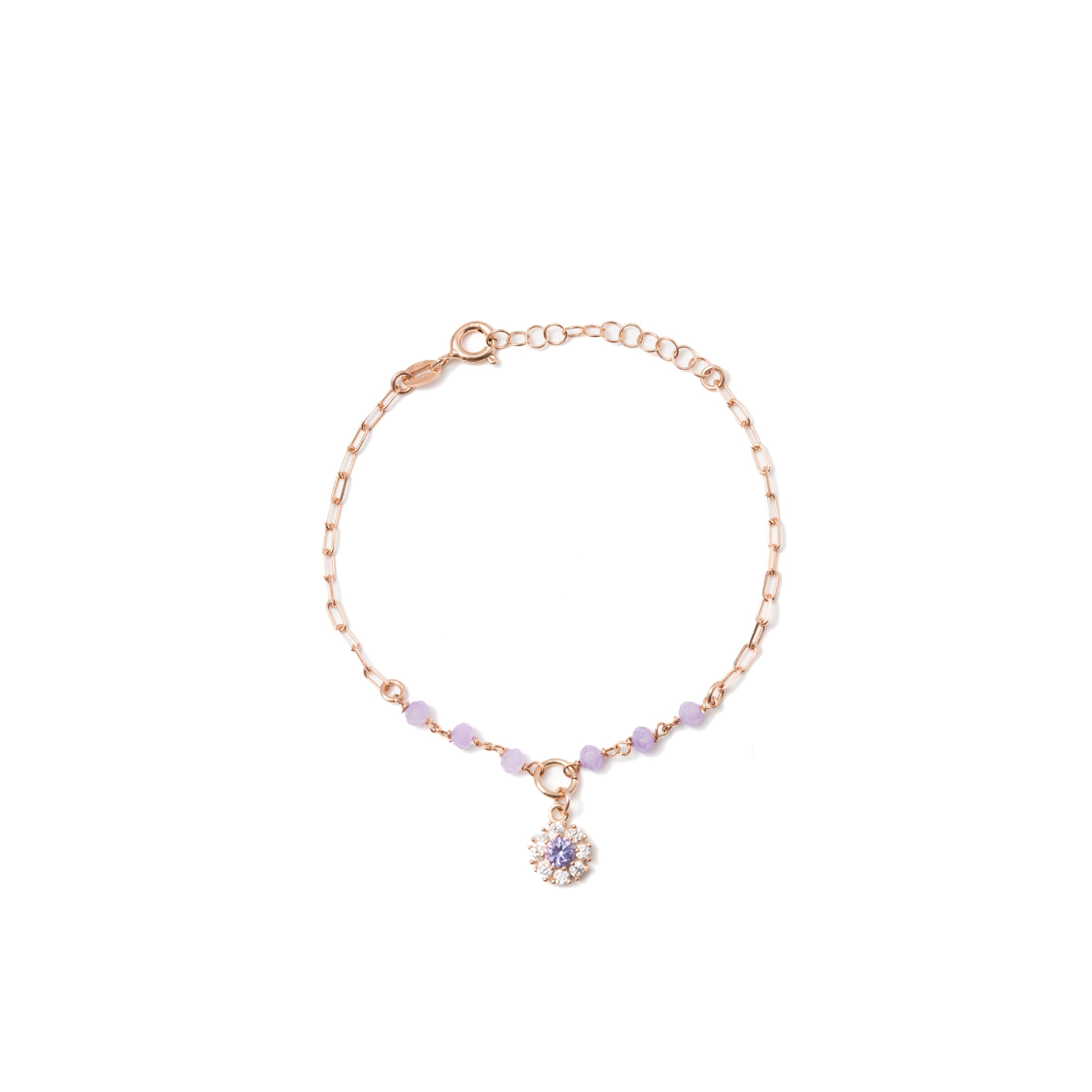 Bracciale con sfere colorate e fiore in argento 925