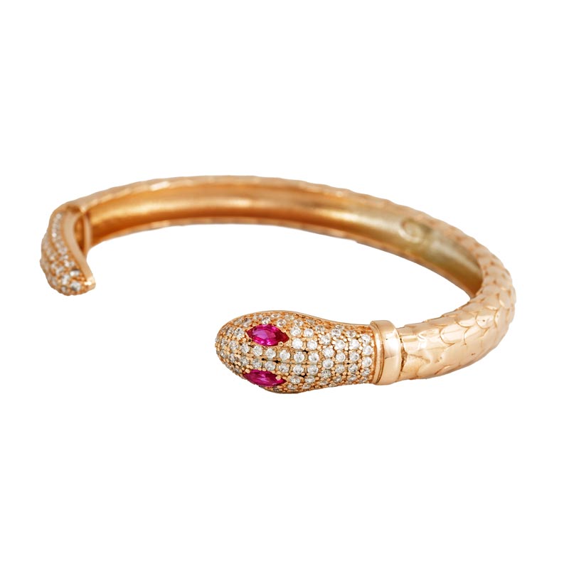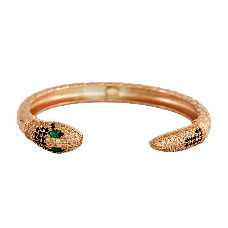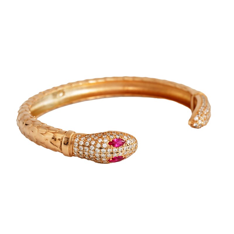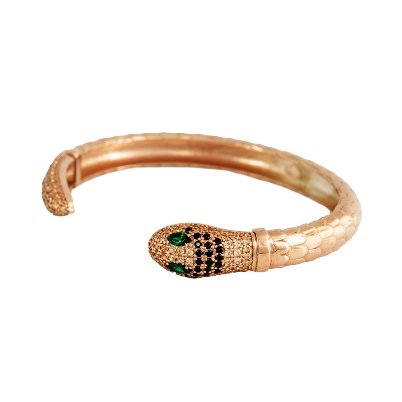 Bracciale in Argento 925 Semi Aperto con Serpente Classico Dorato Rosa