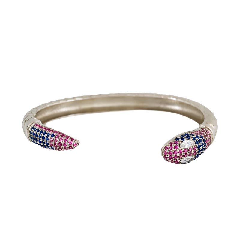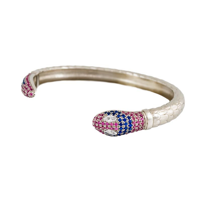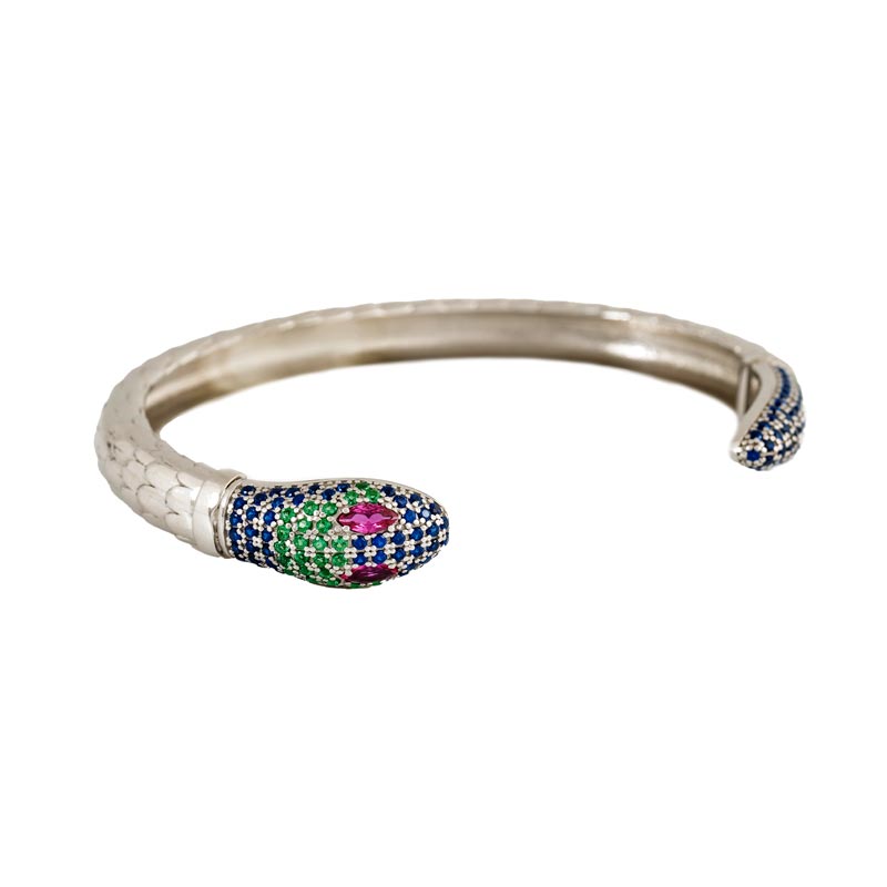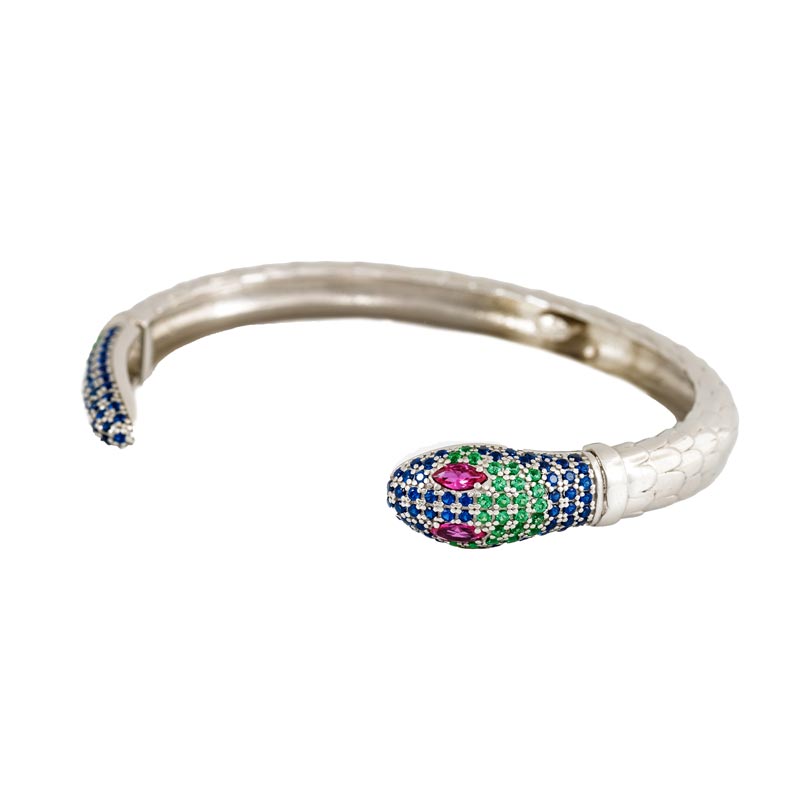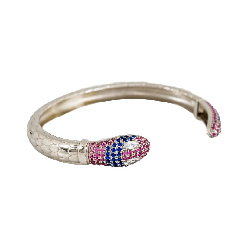 Il bracciale con serpente, classico, dorato e rosa lavorato con pietra cubic zirconia multicolore incastonata ad entrambe le estremità, conferendo una particolare caratteristica di tridimensionalità e giochi di luce al gioiello. E' fornito in confezione provvista di certificato di autenticità. rigido con chiusura a clip è disponibile in taglia unica standard. Un regalo perfetto perchè esclusivo nel suo stile. Per orientarti sulle misure, segui i consigli presenti sul foglio esplicativo della Guida Taglie.