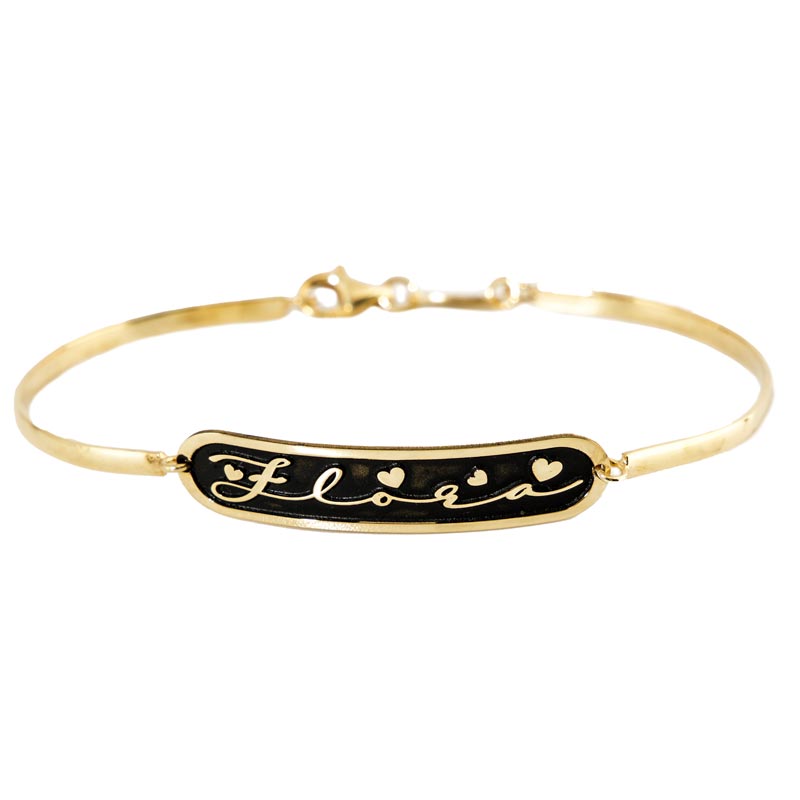 Discrezione ed eleganza gli aggettivi che caratterizzano il tuo mondo. Il bracciale con targhetta personalizzabile con nome inciso nero, in argento 925 rappresenta un aspetto di te al quale non si resta facilmente indifferenti. Raffinato nella sua semplicità, è abbinabile ad altri bracciali anche se indossabile singolarmente. Un regalo delicato da presentare o un acquisto per sé, il bracciale con targhetta incisa è un elemento indiscutibile di stile e vivacità.