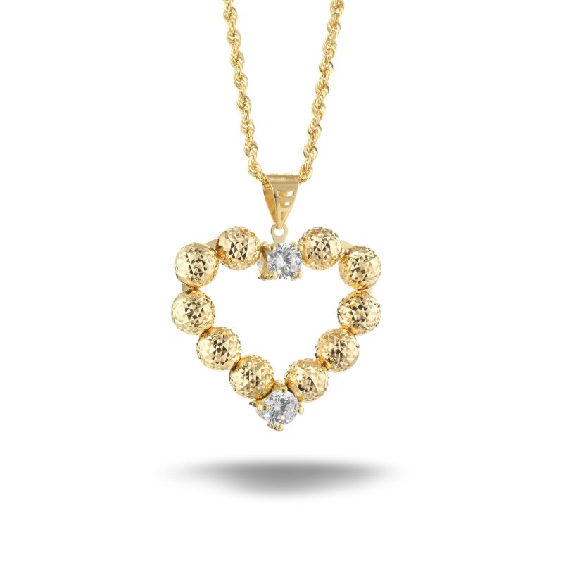 La collana a forma di cuore è impreziosita da palline sfaccettate e impreziosito da scintillanti zirconi.