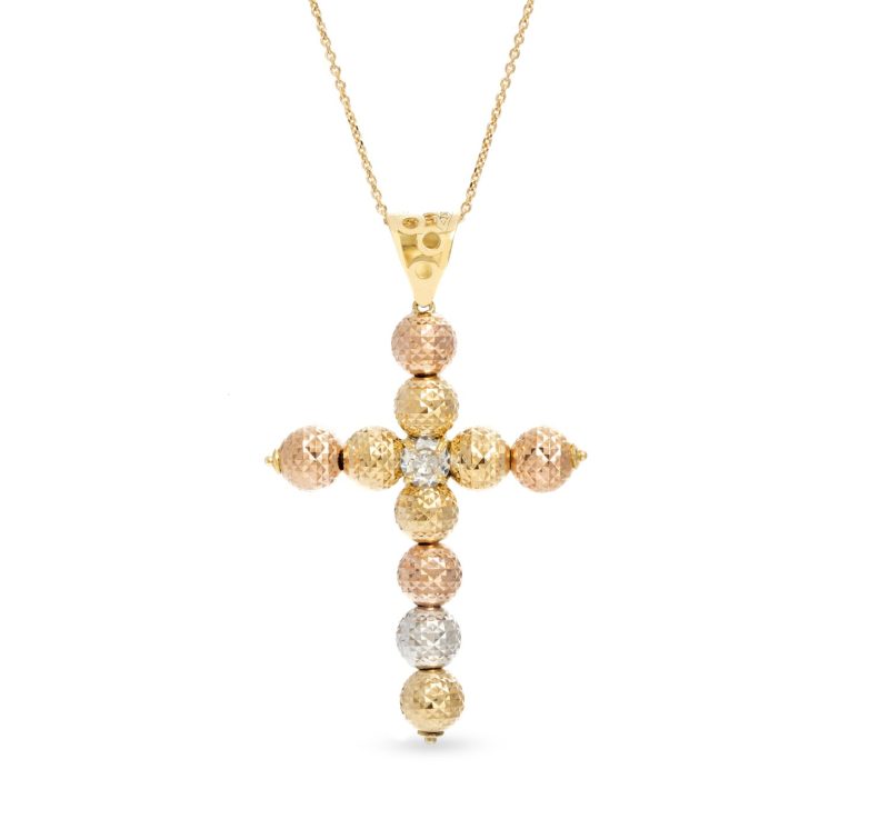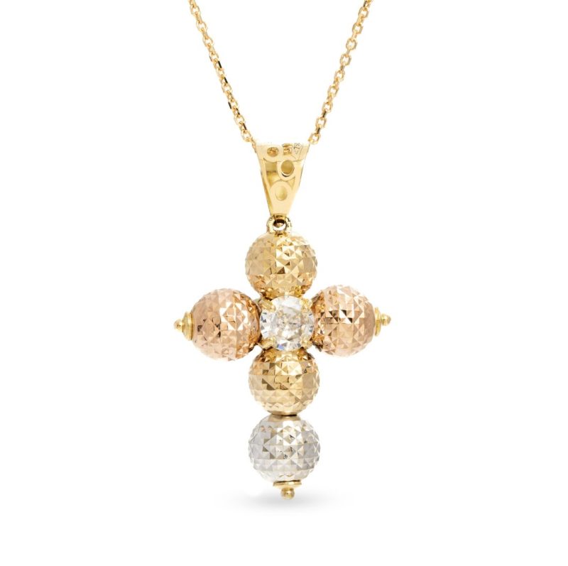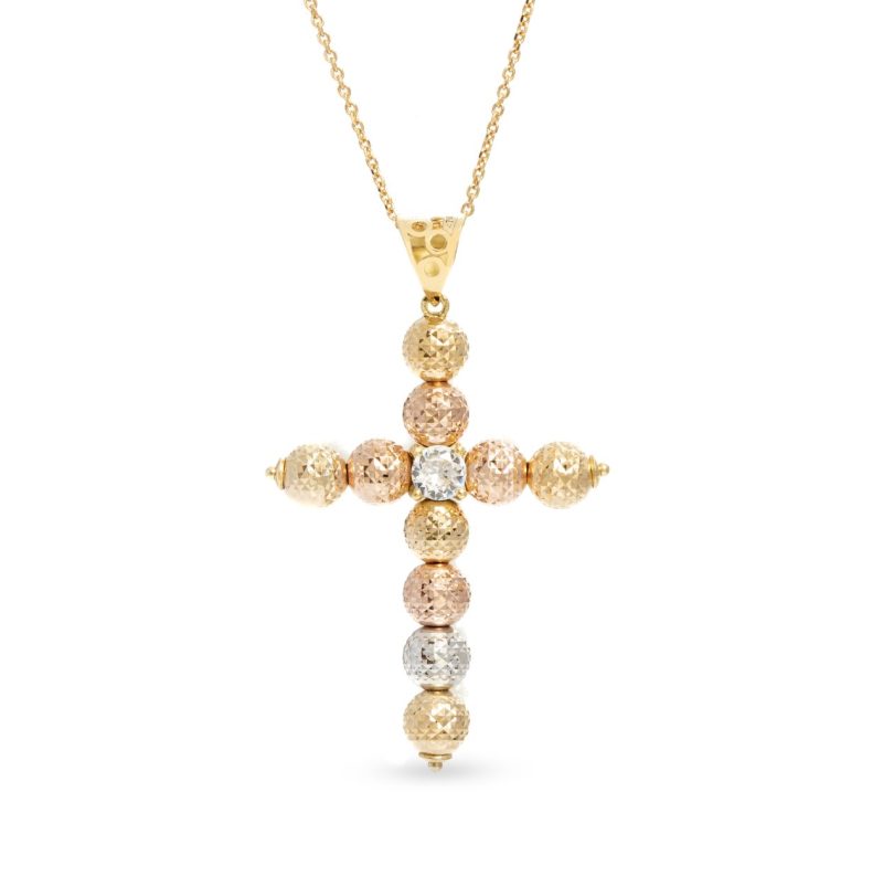 Scegli la tua croce preferita tra le 4 varianti : Tricolor, oro giallo, oro bianco o rosa.