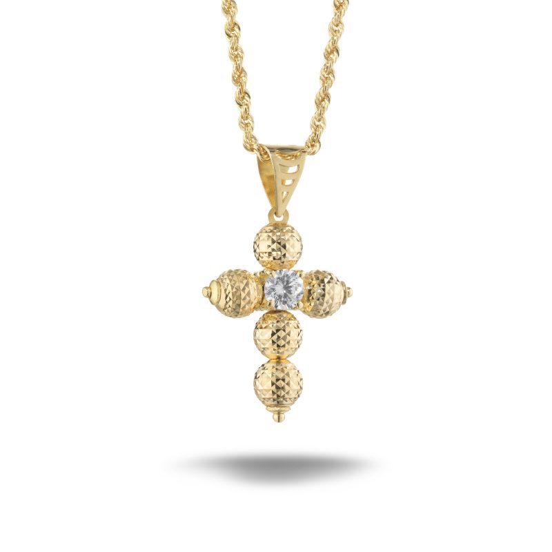 Ogni croce è impreziosita da palline sfaccettate da 6mm e 5 mm e da uno scintillante zircone centrale.