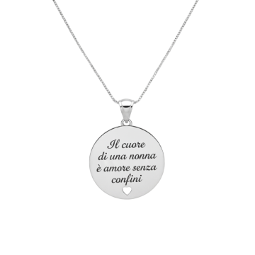 Ciondolo “Il cuore di una Nonna è un amore senza confini” in argento925€39.00Ciondolo “Il cuore di una Nonna è un amore senza confini” in argento92526 Settembre 2025